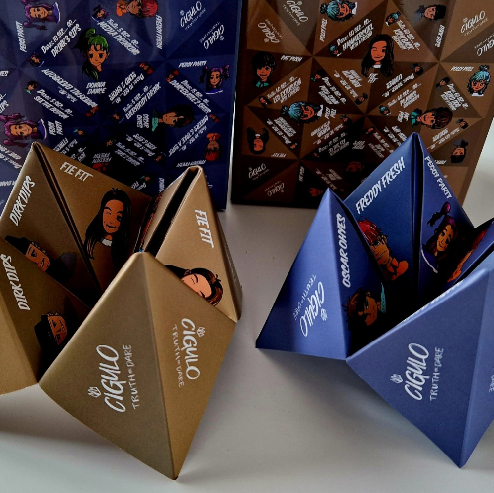 CIGULO's Party, is a party game for those who have permission to drink and party. A guide is attached, including applicable regulations in the respective countries for age limits and alcohol. CIGULO's Fitness is a game for both beginners and trained individuals. Party and Fitness is described further in the instructions. 2-10 pers. CIGULO takes no responsibility for the use of the game. 3 games and guides incl. A box is included where all the games can be stored after they are folded.